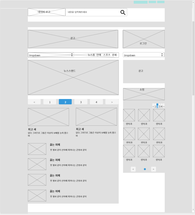 오븐에서 네이버에 대한 와이어프레임을 구현해보고자 하였다 밑이 결과물이다.