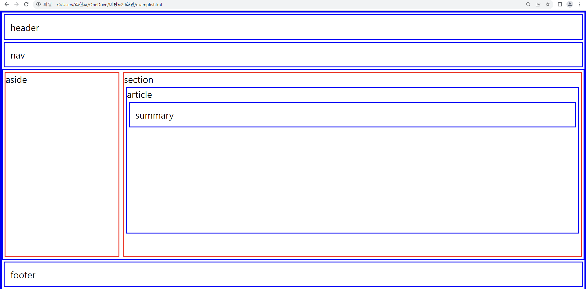 - 우리에게 보여지는 웹페이지의 구조, 영역을 나누는 것이다.