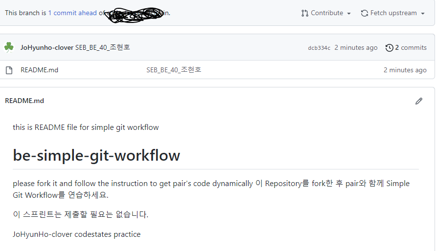 1. 내가 수정한 README.md파일이 나의 깃허브 레포지토리에 들어가있다.