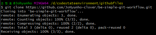 git clone 레파지토리주소(나의 GitHub Repository주소를 뜻함)