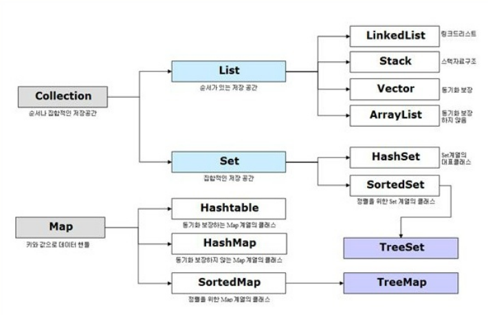 - Collection 인터페이스에는 Iterator 인터페이스를 구현한 클래스의 인스턴스를 반환하는 메서드인 iterator()가 정의가 되어있는데 정의가 된 것은 Set 과 List, Queue 인터페이스들로 이것들을 구현한 HashSet, ArrayList, Linkedlist, PriorityQueue ... 등들이 있다.