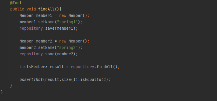 3. 회원 리포지토리가 정상 동작하는지 테스트 케이스 작성