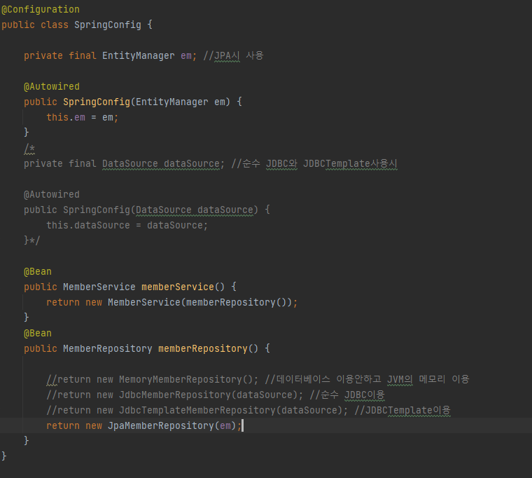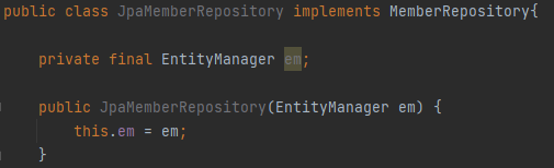 build.gradle에 jpa에 해당하는 것을 implementaion했다면, 스프링 부트가 알아서 EntityManager를 스프링 빈으로 생성해 스프링 컨테이너에 가지고 있다.