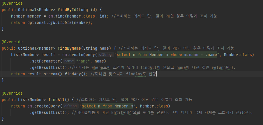 JPA기반 memeber 리포지토리 클래스를 구현해보자