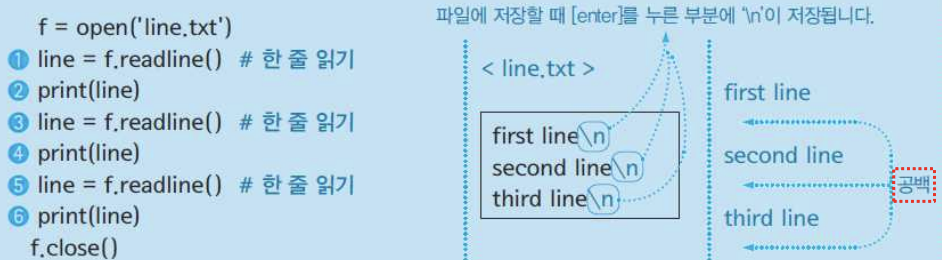 - 한 줄씩 읽어 오는 메소드