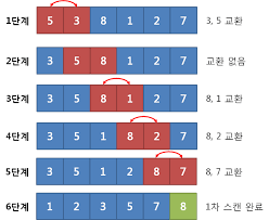 - 서로 비교해서 큰 값을 뒤로 보내는 것이다. (오름차순으로)